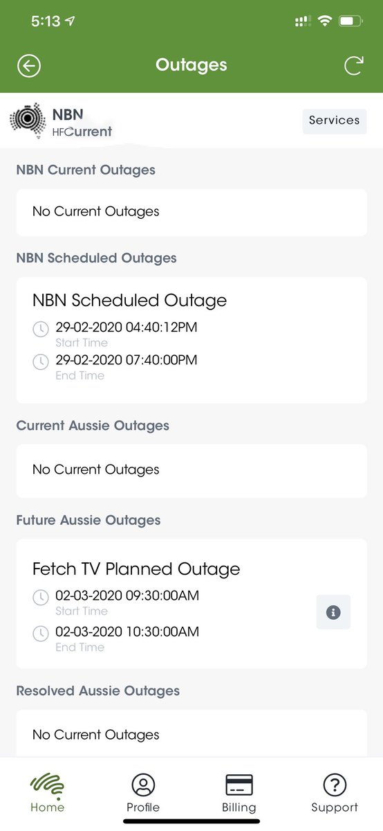 Aussie Broadband offers a number of ways of which we can update customers about outages on their services. I can access over 4G and other employees with Aussie Broadband.