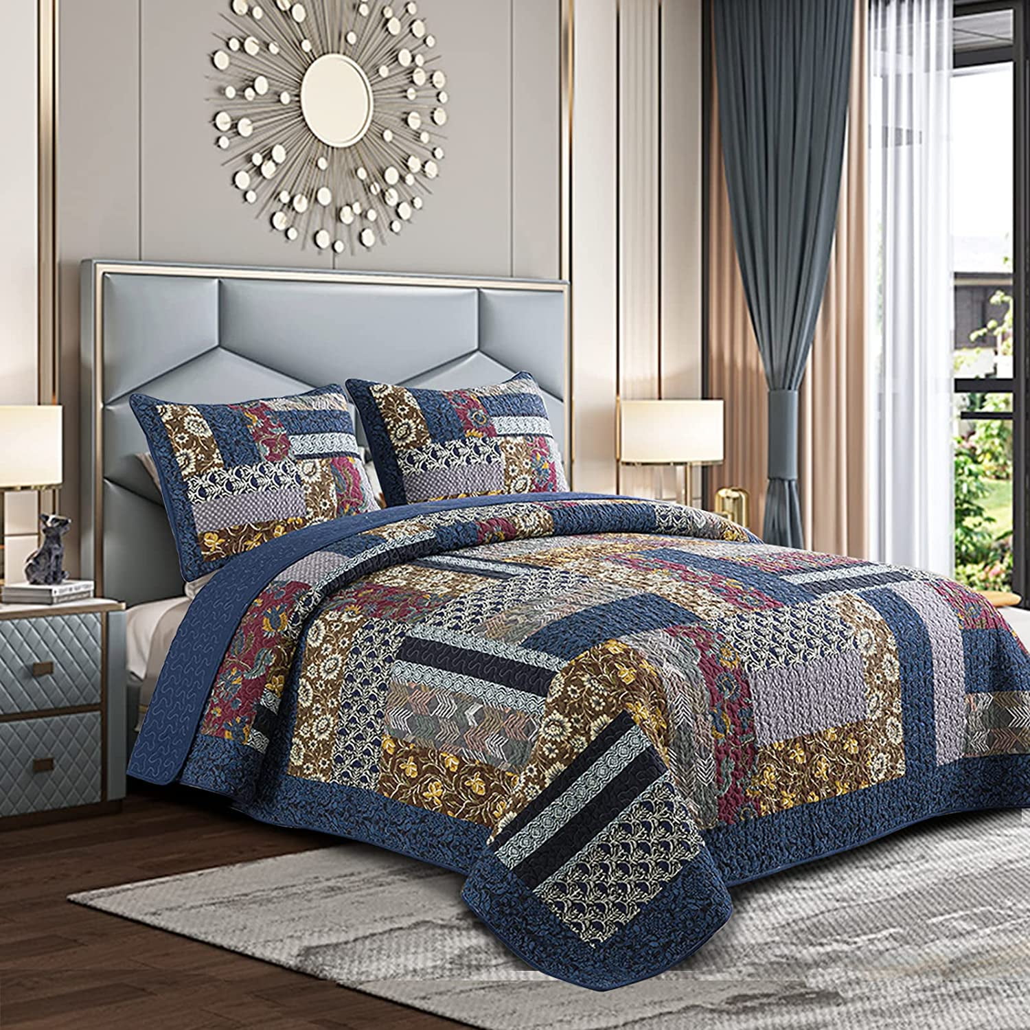 Zaoqi 100 Cotton Quilt Queen Size Farmhouse Bedding Sets Handmade Quilts Queen Bedding Set Cotton Patchwork Bedspread Queen Size 3 Pieces Bohemian Queen Quilt Sets Walmart Com